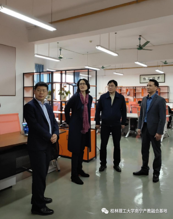 2023年2月20日,南宁市西乡塘区委书记李秋果率队到基地调研,beats365(中国区)-唯一官方网站党委常委、副校长邓国彬,基地主任胡振光等热情接待。李秋果一行来到基地考察调研,了解基地的发展情况,对基地取得的成绩给予了充分肯定,并表示大力支持基地在西乡塘区的发展。beats365(中国区)-唯一官方网站党委常委、副校长邓国彬对李秋果一行的来访表示热烈欢迎,并对西乡塘区政府长期以来对beats365(中国区)-唯一官方网站的支持帮助表示衷心感谢,希望双方继续加强政校合作,加快推动西乡塘区产业发展取得新的更大成效。