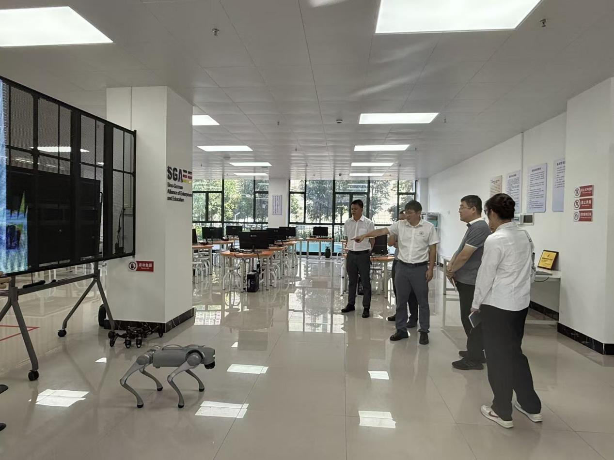 实地调研时,胡传彬一行先后参观了中德新质生产力研学基地及基地成果转化中心,详细了解了基地的发展现状。在座谈会中,双方聚焦铝合金材料开发、科技成果转化与高层次人才联合培养等关键议题深入探讨了合作路径,计划共同利用基地中试基地等资源,缩短技术从实验室到生产线的距离。