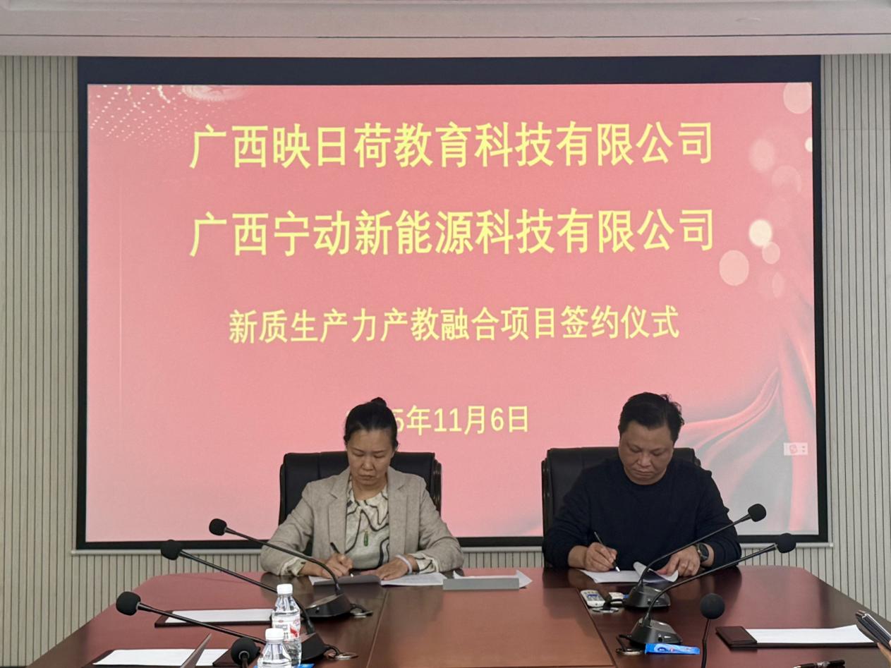 11月6日,广西映日荷教育科技有限公司与广西宁动新能源科技有限公司在基地举行了新质生产力产教融合项目签约仪式。