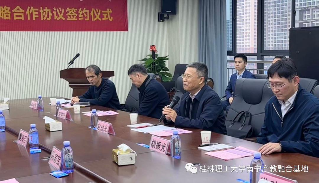 南宁产教融合基地紧紧围绕校党委、校行政的发展战略, 在夯实自身基础的同时,充分发挥基地作为学校区域开放合作窗口平台作用,坚持“走出去、请进来”的思路,不断拓展基地交流合作的空间。共建激光雷达先进制造与应用联合实验室合作载体构建和未来产业化企业在南宁的落地,将引进南信大、中科大激光雷达研究、制造和应用领域国内一流的专家人才团队作为基地研究生导师,在地球科学、计算机科学与技术、环境科学与工程、信息与通信工程、遥感测绘等领域与我校相关学院、学科开展协同合作,不断丰富和充实基地研究生培养和科研创新模式,拓展基地研究生深造和就业渠道。赵成光巡视员在致辞中指出:本次合作是我区高校要深入贯彻党的二十大关于“加强产学研深度融合,强化目标导向,提高科技成果转化和产业化水平,推动创新链产业链资金链人才链深度融合”精神的具体举措,也是苏桂两地高校服务东盟战略的新探索。双方以共建激光雷达联合实验室为产学研载体平台,集成优势资源,聚焦激光雷达先进制造和应用行业和产业的发展,共同打造地方大学名校合作机制和产教融合品牌。同时希望此次合作成为苏-桂地区高校合作的典范,在广西和东盟的土地上结出丰硕的成果。
