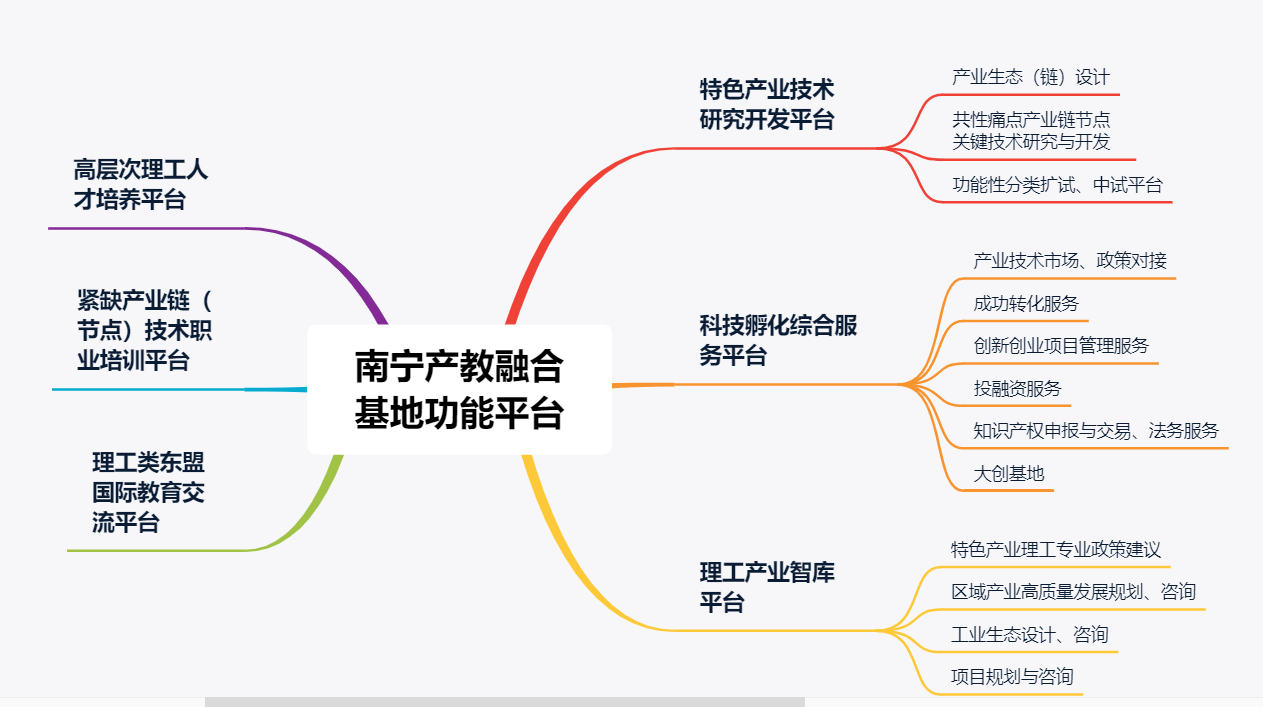 2022年9月,基地与南宁市西乡塘区人民政府签订共建南宁市西乡塘区脑力产业园战略合作协议,以科技前沿和地方需求为导向,充分发挥基地在教育、科技、文化、人才等方面的资源优势,集聚资源,贯彻创新驱动发展和强首府战略,推动发展西乡塘区新基建、新能源、新材料、新一代信息技术等产业为特色的脑力产业链创新集群和创新服务体系,打造包括创新型企业、大专院校、科研院所在内的产业创新生态系统,进一步深化产学研合作,促进政校企融合发展,建设特色鲜明的产教融合基地和脑力产业园。